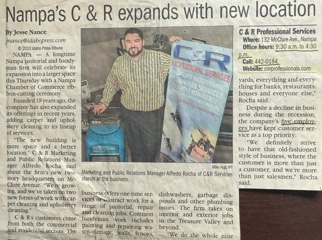 C & R Professional Services, was founded in 1990 by Christian Rivera. With his single vision to be a “one-stop-shop” for the maintenance and repair needs. We can provide a wide variety of services to our clients ranging from general handyman/ maintenance work, tenant improvements, landscape maintenance, all types of remodels and Carpet cleaning.